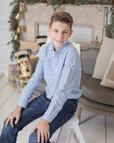 I have a maximum of two people in our family that get to wear a pattern. Everyone else gets a solid shirt. If an outfit starts to look a little plain consider adding a tie, contrasting colors or layering. I layered my husband's and youngest son's tops by adding a solid sweater over a plaid shirt. It's less expensive to layer the ones that still wear kids sizes, which is why my youngest is layered rather than my 16 year old who wears a men's sizes. Luckily, my husband already had this sweater so I only had to purchase one sweater instead of two.